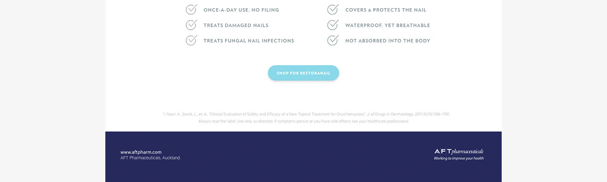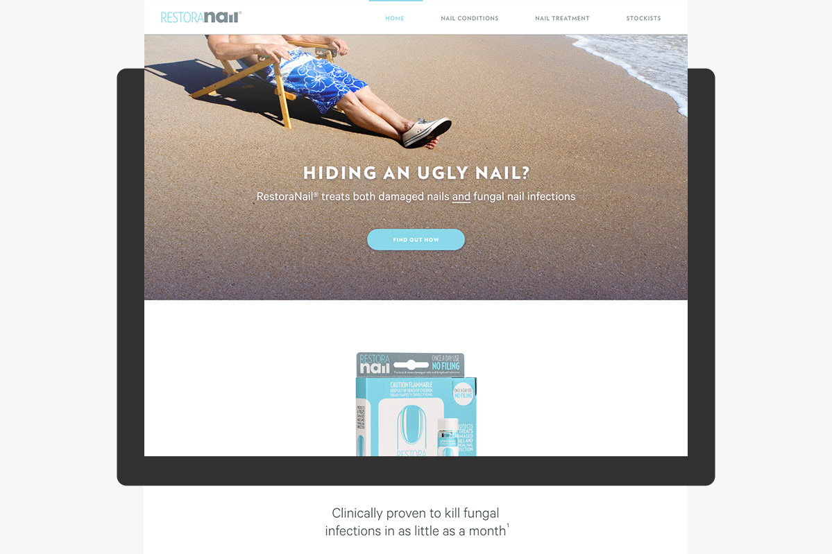 A four-page website educating consumers on the benefits of using RestoraNail to treat ugly nails. • Art direction • User experience design • Prototyping • User interface design • Illustration