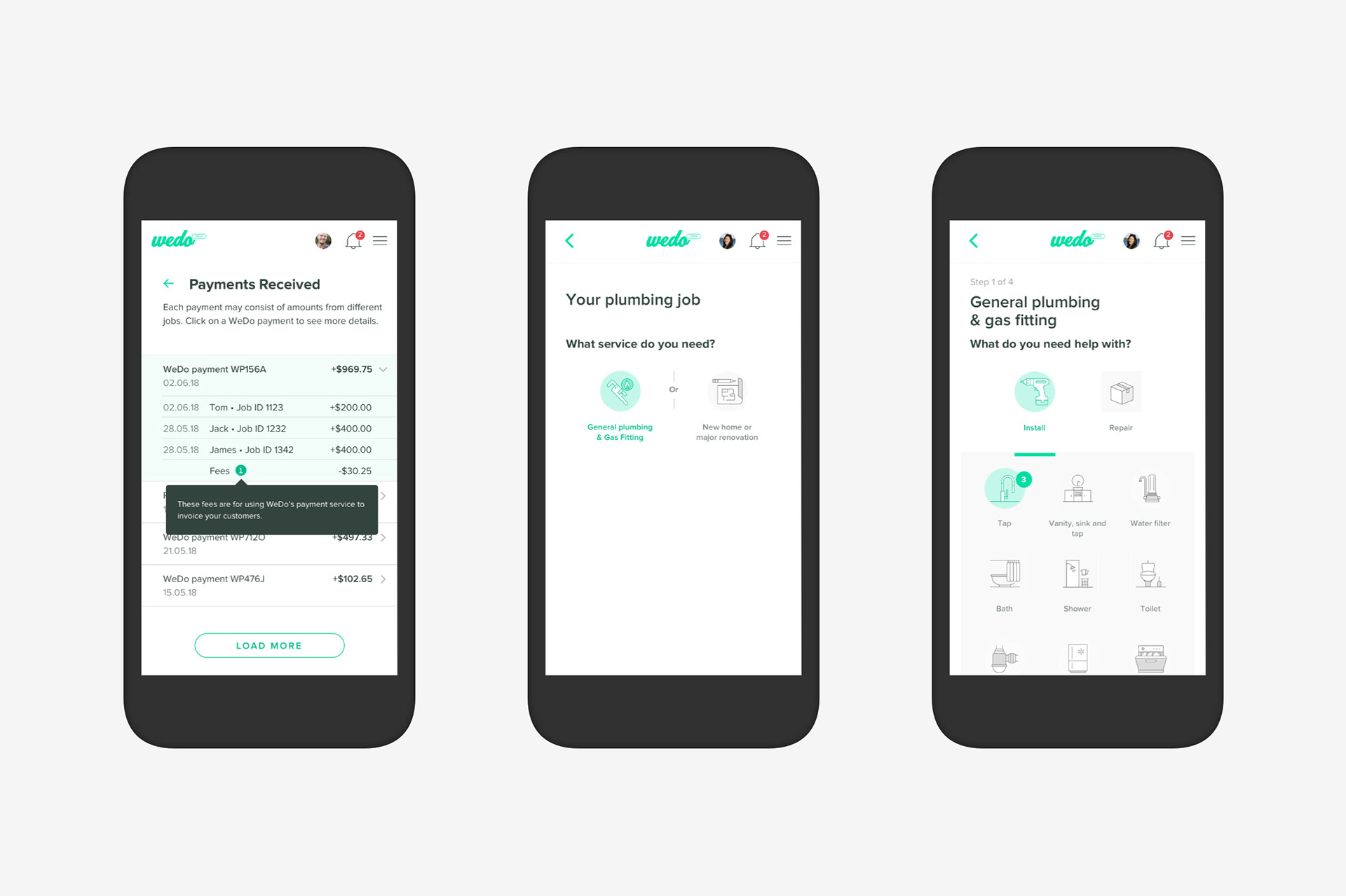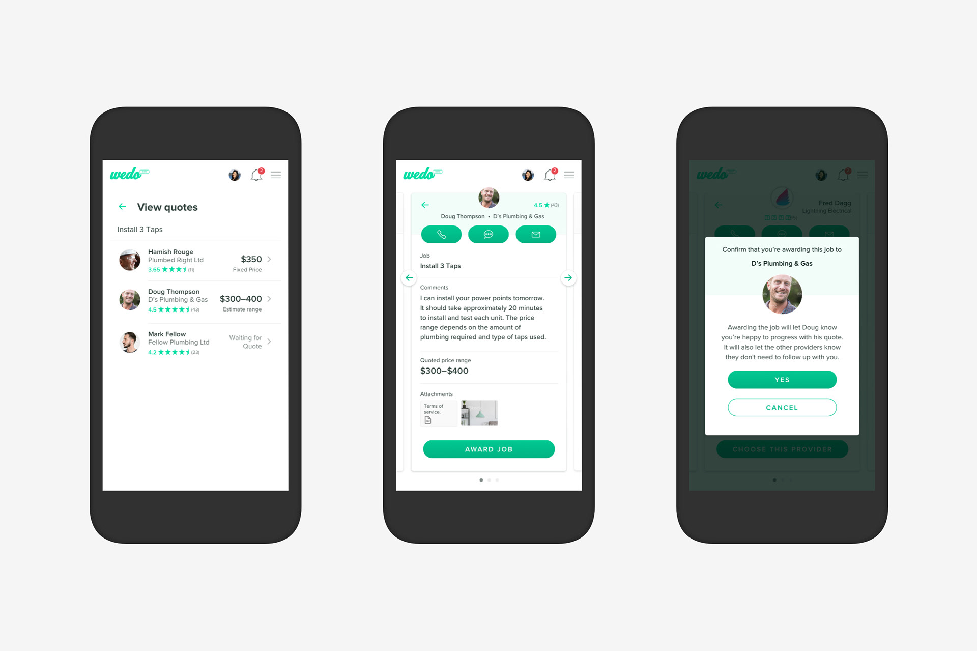 The team at WeDo envisioned a revolutionary marketplace to connect tradies and households. I helped WeDo realise this vision by planning and designing the web app through which it would happen. To plot project timelines and set budgets, I sorted the user journey maps into epics and features. I also created a pattern library to help lift the volume of work possible in each design sprint. Early prototyping let me test visual and experiential concepts with stakeholders and ensure we were all aligned. To deliver a simple, fun experience I used illustrations and animated micro-interactions. With its ease of use and rich features, WeDo has become a popular tool. The WeDo web app features include geo-targeting, payments, quoting, dynamic estimates, messaging, dashboard, notifications, profiles, directories, ratings, and reviews. • Art direction • Project management • User experience design • User interface design • User testing